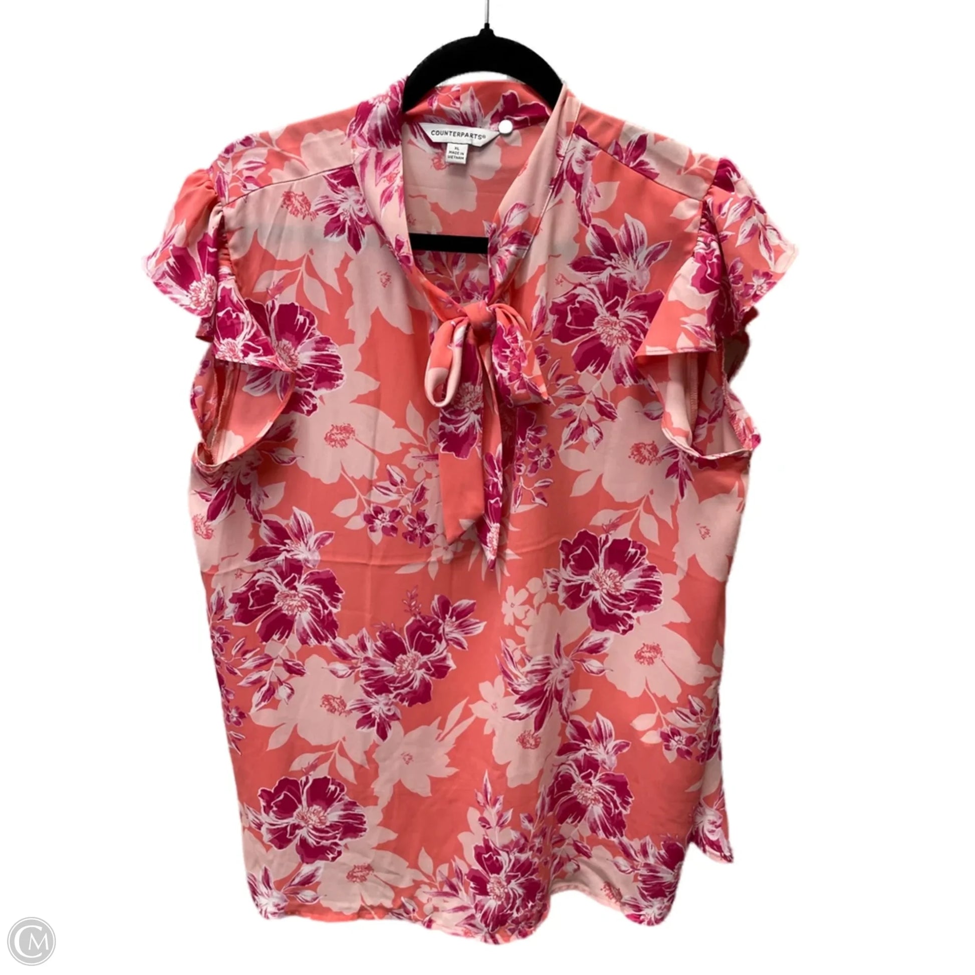 Blouse Short Sleeve By Counterparts In Pink & White, Size: Xl