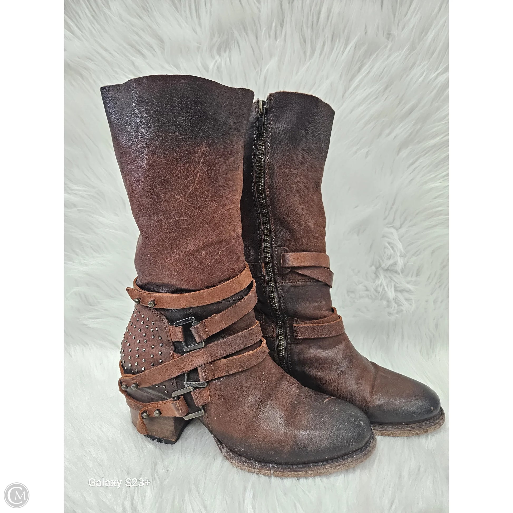 Boots Mid-calf Heels By Freebird In Brown, Size: 7