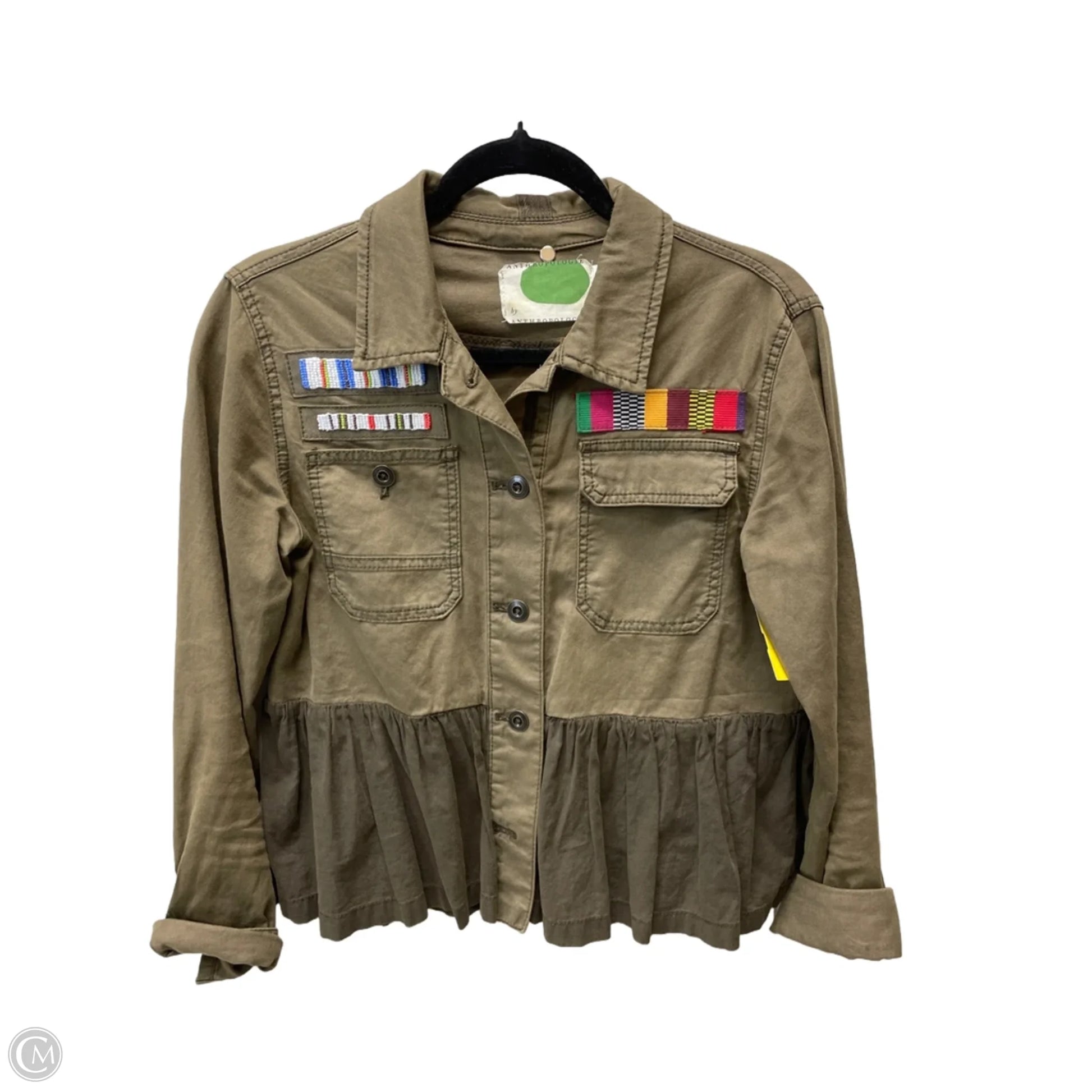 Crafted by Anthropologie, this XS green utility jacket exudes timeless elegance. Its quality fabric, impeccable fit, and practical features make it a wardrobe essential.