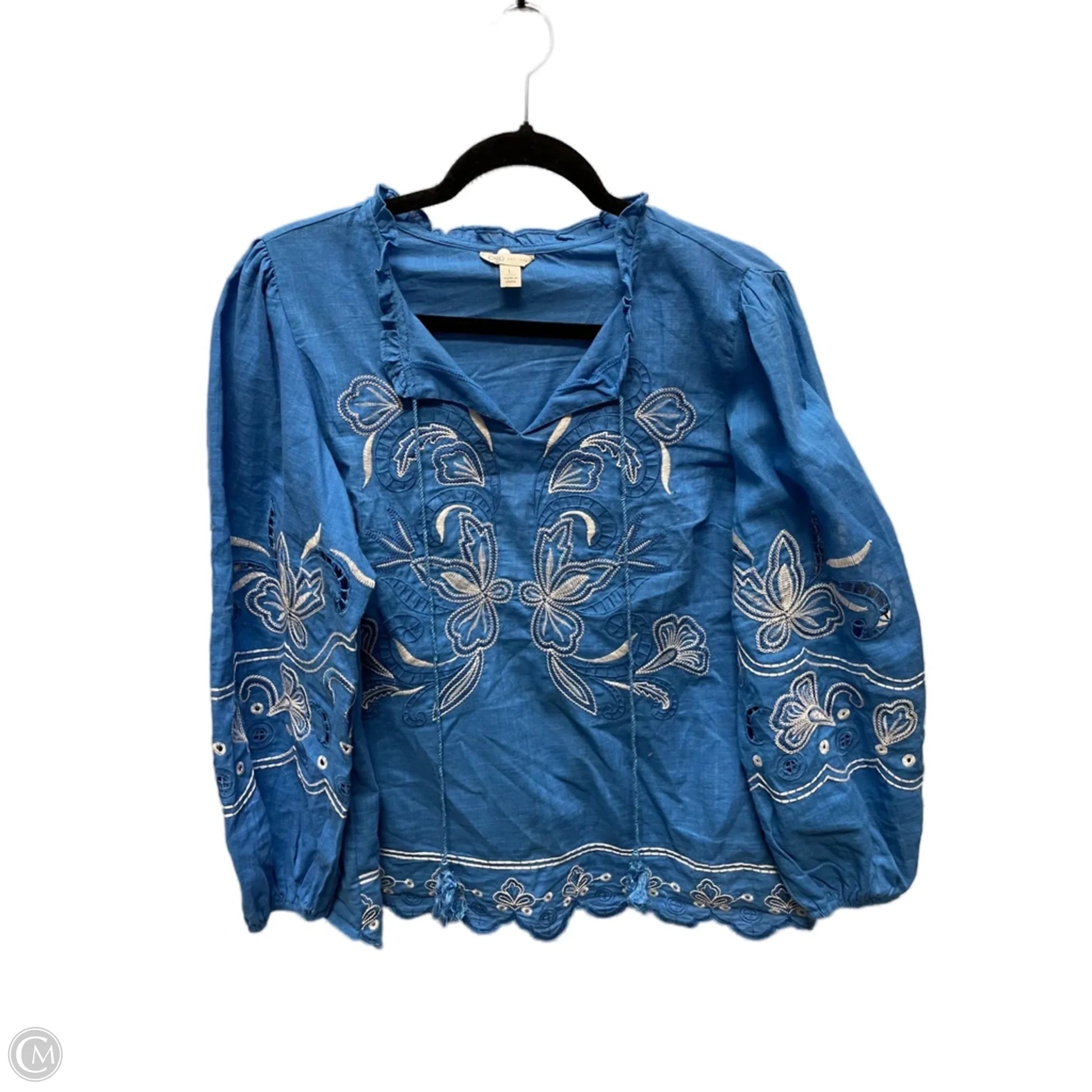 Top Long Sleeve By Cato In Blue & White, Size: L
