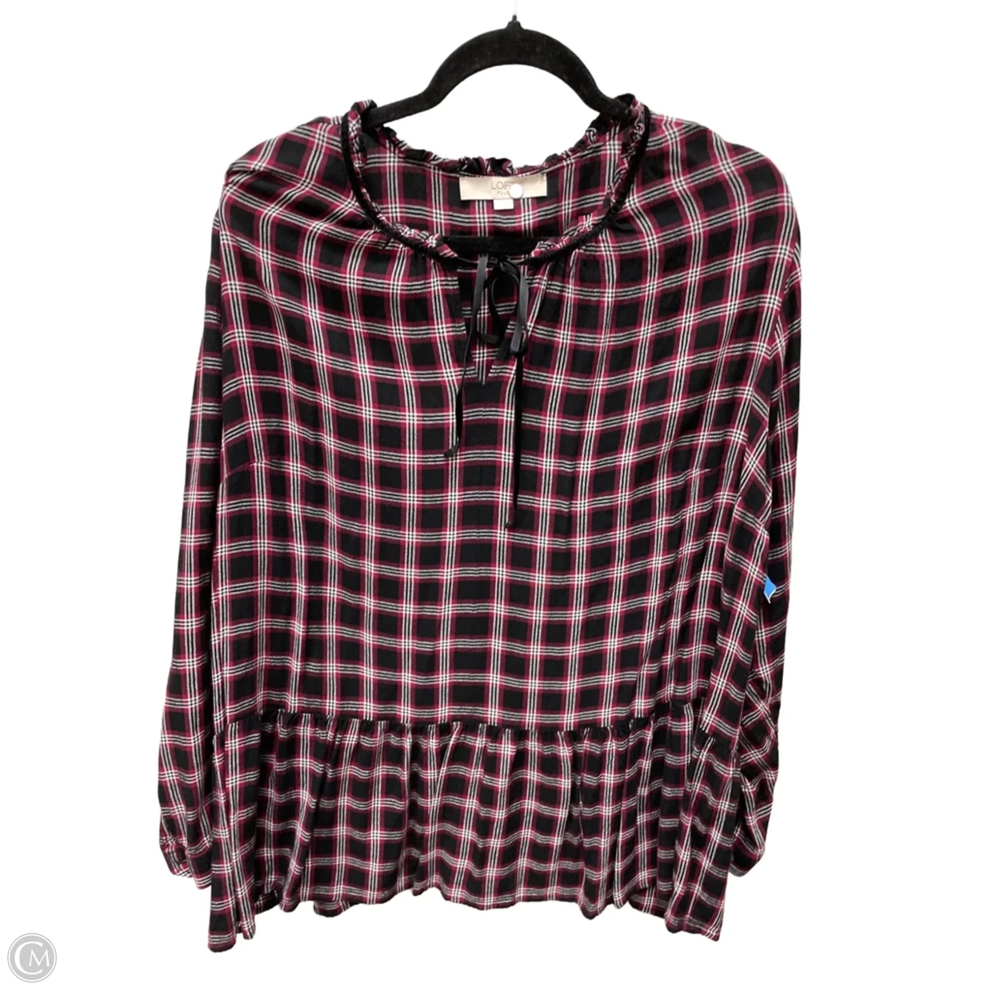 Top Long Sleeve By Loft In Plaid Pattern, Size: 3x