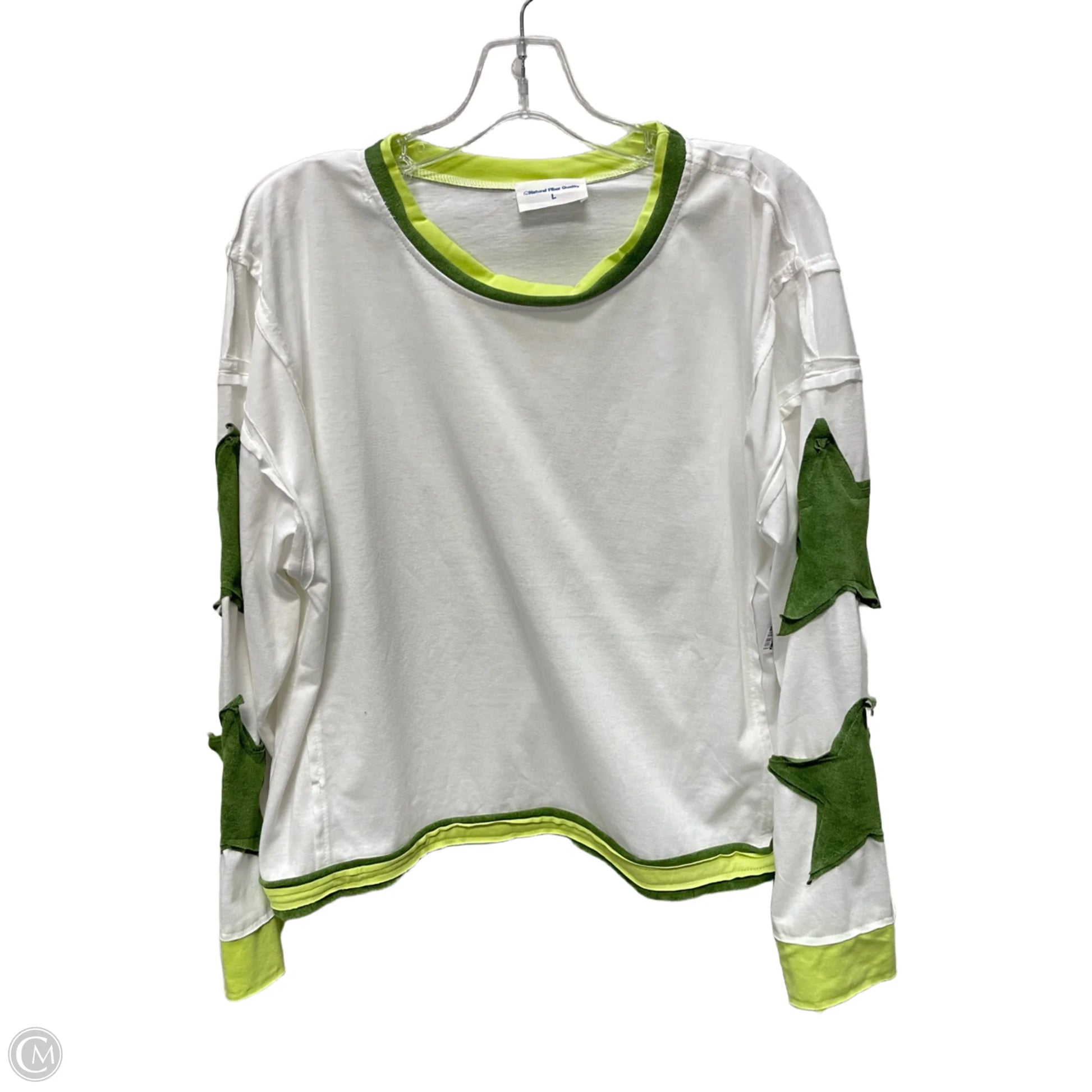Top Long Sleeve By natural floor quality In Green & White, Size: L